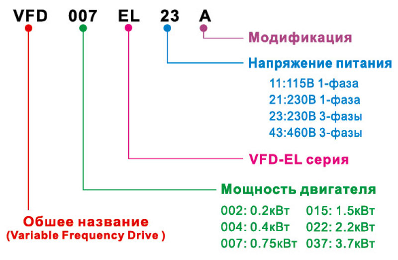 Преобразователи частоты VFD-EL предназначенны для решения несложных задач с применением привода переменного тока. Например, таких как управление скоростью насосов и вентиляторов малой мощности, ленточных транспортеров, вращателей, небольших механо-обрабатывающих станков, и т.д.